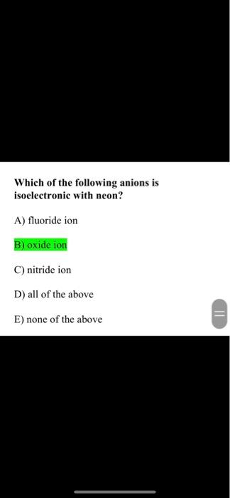 A nitride ion B sulfide ion C bromide ion D all of the above E none of the above Section. So option B is incorrect. So rmFis not isoelectronic with neon.